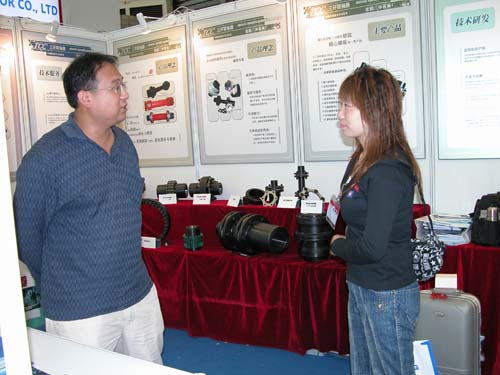 十多年來, 為客戶解決傳動問題成了沈陽三環(huán)的日常工作。 豐富的制造經(jīng)驗、雄厚的技術力量、高度團結的工作隊伍,使該廠可為客戶提供測繪、設計、制造、開發(fā)等一系列完備的技術服務。展臺上陳列了一系列的產品:膜片聯(lián)軸器、鼓形齒聯(lián)軸器、 齒式聯(lián)軸器、彈性套柱銷聯(lián)軸器、 脹緊聯(lián)接套(包括鎖緊盤)等等,另外還陳列了該廠自行開發(fā)研制的意境申請專利的對輪型膜片聯(lián)軸器等其它形式的聯(lián)軸器。記者為了留下這難得的資料,把這些產品都一一的攝入鏡頭。