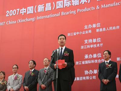 開幕式上,新昌縣委書記何加順致辭,簡(jiǎn)要介紹了新昌的經(jīng)濟(jì)社會(huì)發(fā)展情況。他說,近年來,新昌的工業(yè)發(fā)展已形成鮮明的產(chǎn)業(yè)集聚特征,其中尤以軸承最為明顯,軸承產(chǎn)業(yè)在新昌工業(yè)中的比重達(dá)到22%。新昌已成為國內(nèi)最大的軸承套圈生產(chǎn)基地和出口配套基地,產(chǎn)量占全國市場(chǎng)的20%,產(chǎn)品遠(yuǎn)銷美國、日本、歐盟等國家和地區(qū);新昌的成品軸承門類齊全,軸承裝備制造業(yè)也有一定基礎(chǔ),軸承產(chǎn)業(yè)已成為新昌獨(dú)具特色的區(qū)域塊狀經(jīng)濟(jì)。