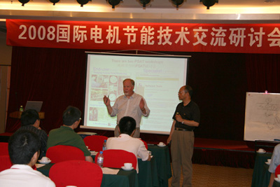 隨后會(huì)議進(jìn)入高潮階段由國外專家?guī)硐到y(tǒng)的電機(jī)節(jié)能技術(shù)與企業(yè)溝通