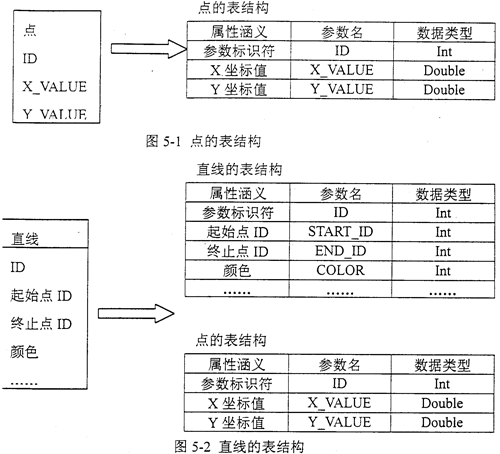 每個(gè)類都可映射成一張或多張表,圖5-1是點(diǎn)類映射成表的例子。