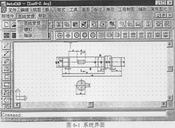 減速機(jī)計(jì)算機(jī)輔助設(shè)計(jì)、繪圖及圖紙管理系統(tǒng)主要包括MCADDS子系統(tǒng)和減速機(jī)CAD子系統(tǒng)二大部分,MCADDS系統(tǒng)是一個(gè)相對(duì)通用的圖形設(shè)計(jì)與圖紙管理系統(tǒng),適用于各種機(jī)械產(chǎn)品,包括符合國(guó)家標(biāo)準(zhǔn)的繪圖平臺(tái)、基于事物特性表的通標(biāo)件庫(kù)和面向信息集成的圖紙管理等三個(gè)模塊;減速機(jī)CAD系統(tǒng)是針對(duì)減速機(jī)的設(shè)計(jì)計(jì)算開發(fā)的,對(duì)零部件具有通用性,包括齒輪嚙合校核、齒輪傳動(dòng)系統(tǒng)的設(shè)計(jì)與校核。圖6-1為MCADDS系統(tǒng)界面。該系統(tǒng)的主要內(nèi)容如下: