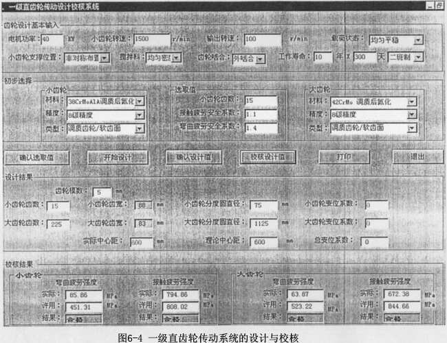 本系統(tǒng)根據(jù)企業(yè)的要求,將行業(yè)的普遍需求和企業(yè)的特殊需求結(jié)合起來(lái),既具有通用性,又具有專用性。通用性表現(xiàn)為可以對(duì)任意類型的圓柱齒輪嚙合對(duì)(包括直齒輪、斜齒輪之、行星齒輪的內(nèi)嚙合和外嚙合等等)進(jìn)行校核,專用性表現(xiàn)為針對(duì)一級(jí)、二級(jí)直齒輪和斜齒輪和斜齒化嚙合傳動(dòng)系統(tǒng)的設(shè)計(jì)與校核。