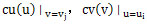 根據(jù)給定的已知曲面上的節(jié)點(diǎn)坐標(biāo)值,分別沿u=ui,v=vj構(gòu)造關(guān)于幾何參數(shù)u,v的三次樣條插函數(shù):