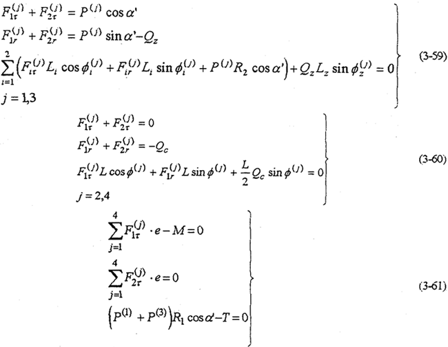 ——共可得到4個方程。由式(3-59)-(3-63)就構(gòu)成多相并列雙曲柄機構(gòu)輸入式二齒環(huán)內(nèi)齒行星傳動機構(gòu)的動力分析數(shù)學模型。