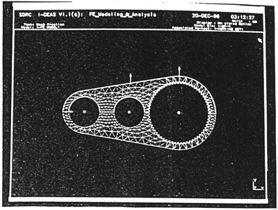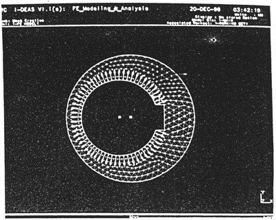 從上節(jié)介紹知,彈性體的柔度系數(shù)矩陣可以通過有限元法,加單位載荷來計算確定。因此,偏心套及內齒行星傳動齒板的柔度計算,實際上是對其進行有限元建模分析。下面以SHQ40型三環(huán)傳動為例,在SUN工作站上使用I-DEAS軟件中的有限元模塊計算偏心套及齒板的柔度系數(shù)。