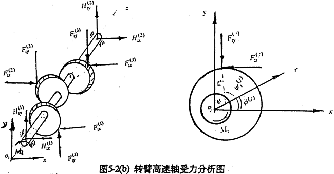 根據(jù)對(duì)三環(huán)減速器的靜不定次數(shù)計(jì)算,當(dāng)單軸輸入(n=1)時(shí),S=4,雙軸輸入(n=2)時(shí),S=5。故應(yīng)根據(jù)輸入形式,由位移協(xié)調(diào)節(jié)器條件增加4個(gè)或5個(gè)動(dòng)力分析補(bǔ)充方程。