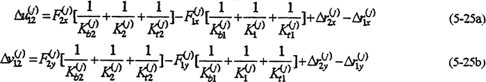式(5-18)中的△u(j)12,△u(j)12為機(jī)構(gòu)變形后兩偏心套中心之間的長(zhǎng)度L12產(chǎn)生的增量分量,它包括齒板兩高速軸孔之間的相對(duì)變