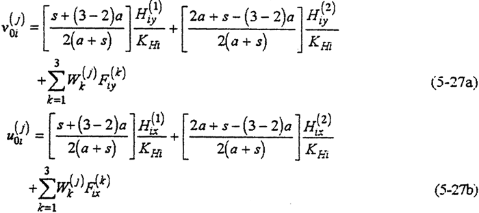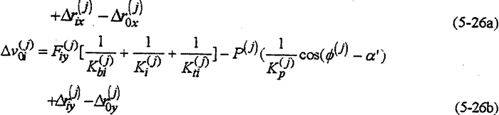 式(5-27)及式(5-28)中s是兩則齒板靠近箱體的距離,a是齒板之間的距離。取箱體軸承的剛度KH0=KHi=1379×105N/mm。偏心套的徑向變形△e(j)i以及外齒輪的徑向變形△R(j)1均很微小,故一般忽略不計(jì)。