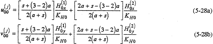 低速軸軸心位移u(j)00,V(j)00也是由箱體軸承變形及低速軸彎曲變形組成。但由于低速軸的法向尺寸較大、彎曲變形很小,故可忽