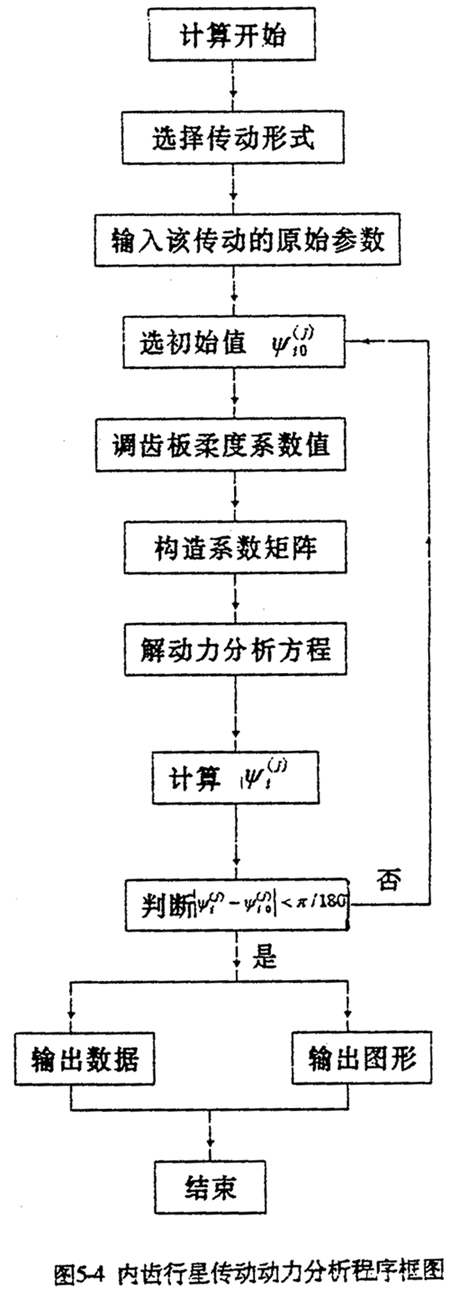 在不計(jì)各種誤差且機(jī)構(gòu)變形很小時(shí),將以上參數(shù)代入三環(huán)減速器的非線性動(dòng)力分析方程式(5-1)~(5-8)、(5-18)、(5-19)、(5-22)~(5-23)等方程,在計(jì)算機(jī)上求解,就可求得三環(huán)減速器各載荷隨工況角φ的變化規(guī)5-4為計(jì)算程圖。