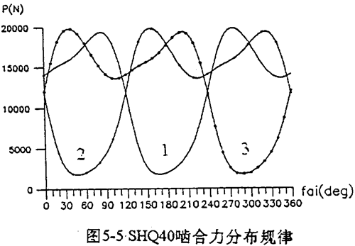 SHQ40型三環(huán)減速器的嚙合力隨φ的變化規(guī)律如圖5-5所錄。由圖可以看出嚙合力的以下規(guī)律: