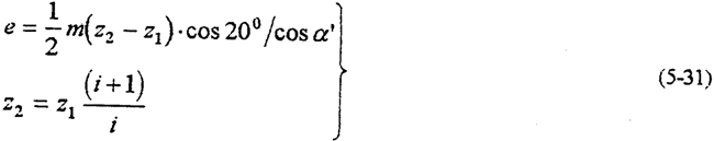由上式知,當齒數(shù)差Z2-Z1越小或傳動比i越大時,偏心距e越;壓力角越大時,偏心距e越大,則選用的行星軸承尺寸大,齒板高速軸承孔徑也就大。圖5-17是傳動比、壓力角、以減速器行星軸承載荷的影響。由圖可見,傳動比的變化對減速器的動力性能影響極大;傳動比越大,則偏心距越小。由式(5-30)分析得,行星軸承載荷必須大。壓力角的變化,對行星軸承載荷影響小得多。